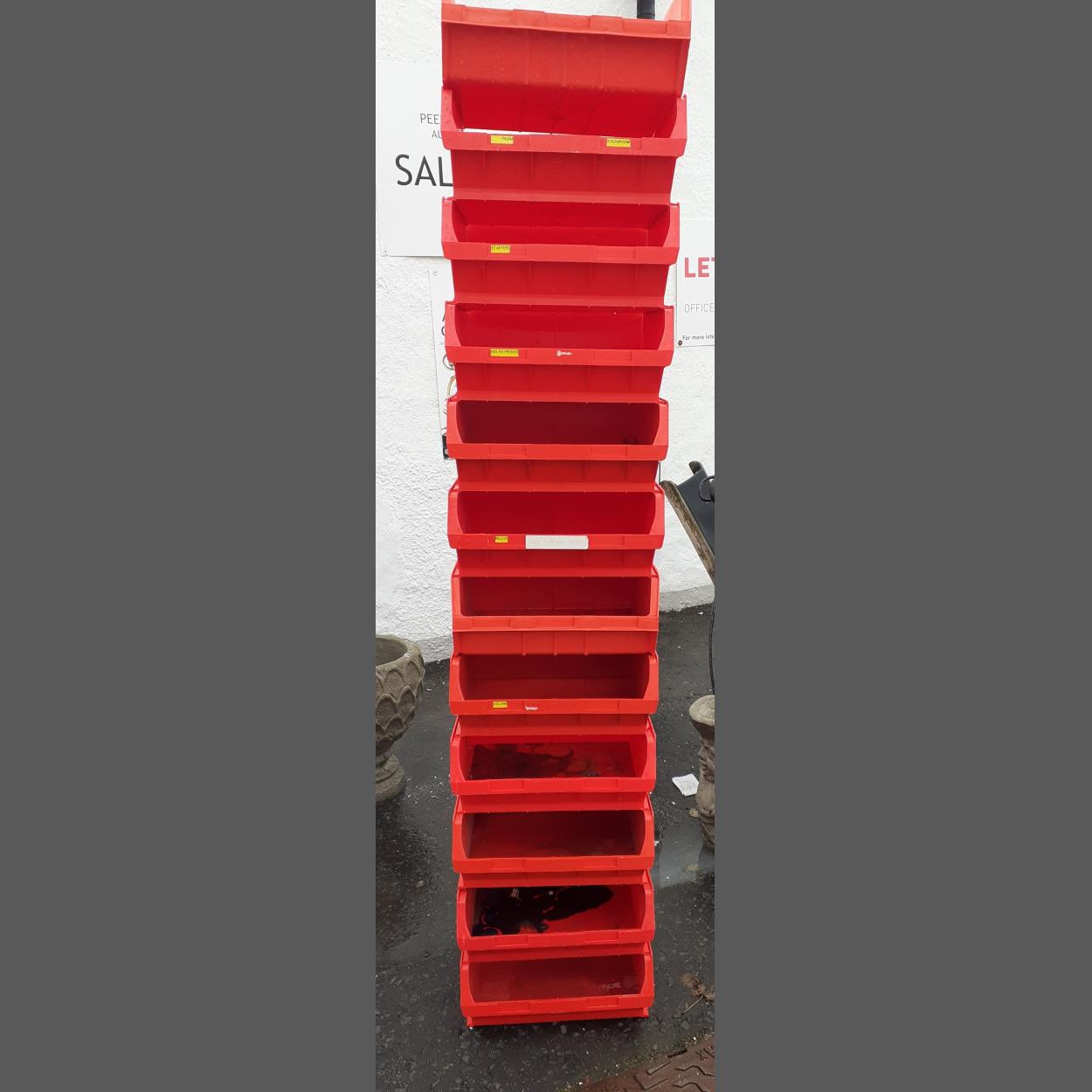 Solve your storage needs with these bins - 12 bins at 41cmWx36cmDx18cmH, all stackable
