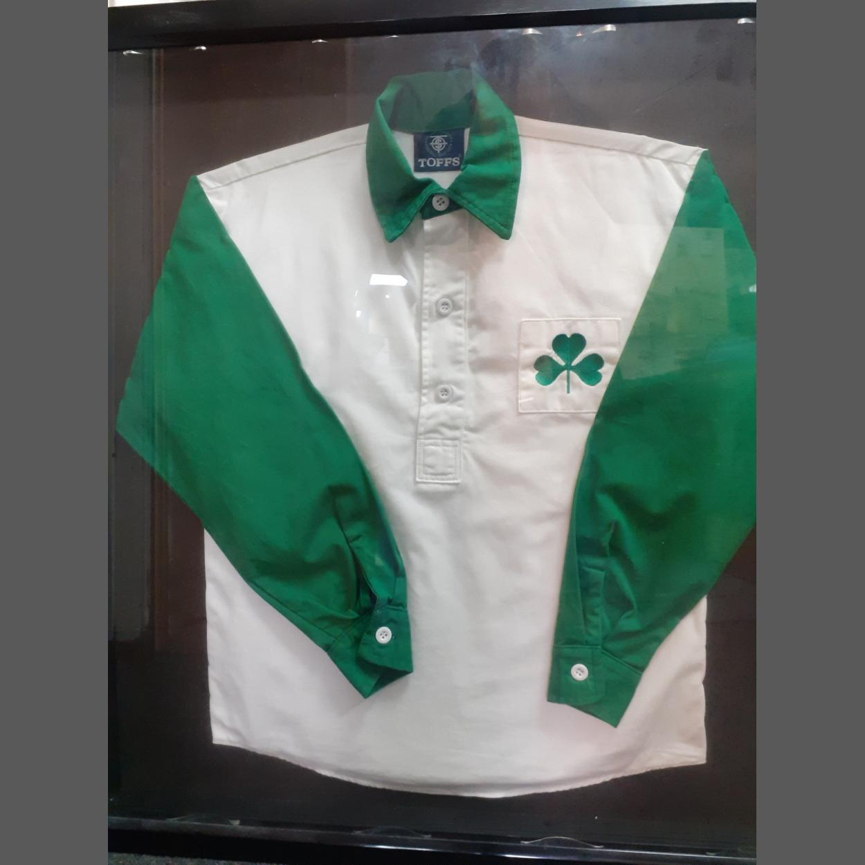 A vintage CELTIC "Away" football shirt as used by the team from 1955 until 1964, the shirt is housed in a large display frame measuring 85cm x 87cm
