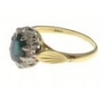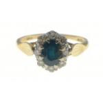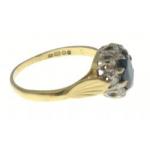 An 18ct gold sapphire and diamond (tested) ring Size M in jeweller's box, 2.7g gross weight. Hallmarks rubbed.