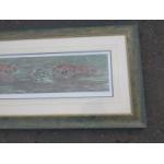A limited edition (221/500) print entitled 'Trouble Brewing' of two tigers with a Coke bottle by ALAN M HUNT visible work measures 8x29 inches approx, frame measures113x60cm approx (small chip missing from frame) comes with certificate of authenticity
