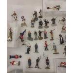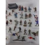 A collection of diecast painted military army figures from various historical eras. Most have regimental details noted on base. Mainly unbranded. Over 60 figures in total. May have minor loose parts.