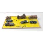 MAD MAX tribute home made diorama incorporating a Mad Max style Chevrolet Police Car and several others in a dystopian wasteland scene. Cleverly weathered and altered commercially produced models in a home made case that measures 57 x 23 x 27cm approx.