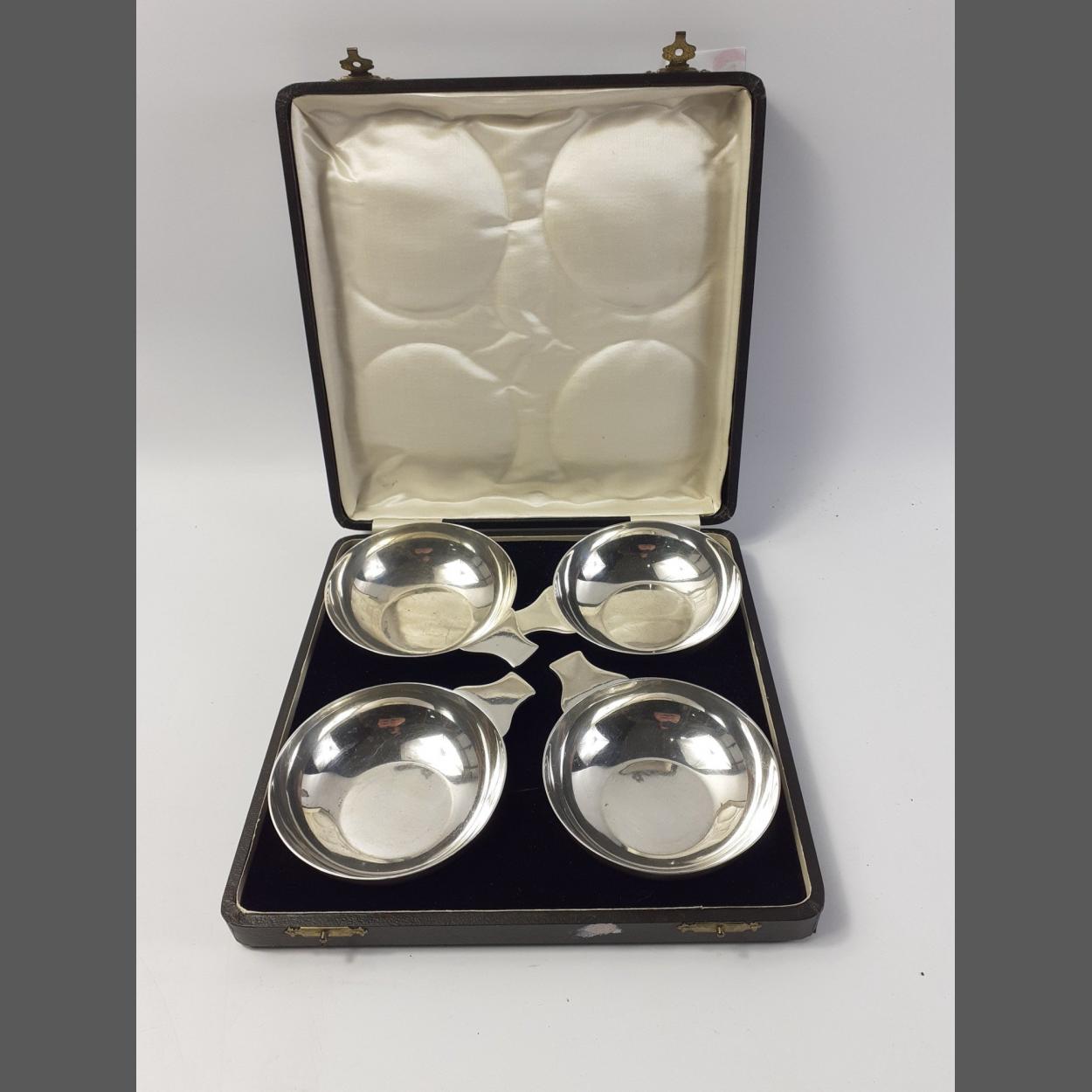 A very attractive cased set of EP wine taster bowls by ALEXANDER SCOTT. Each 10cm across and all in excellent condition.