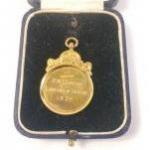 A VINTAGE 1935 Langholm Sevens medal hallmarked 375 with a Birmingham hallmark, 4cm long, weight 6g