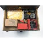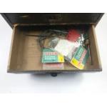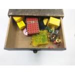 A four drawer set of tabletop filing drawers full of vintage MECCANO, cabinet measures 31x26x24cm approx