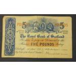 Scottish Banknote - ROYAL BANK OF SCOTLAND 1961 £5 In good collectible grade. Signs of wear with folds and wear to edges but no rips, tears or penmarks.