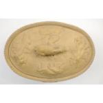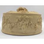 An antique Wedgwood caneware lidded game pie dish with hare finial handle c1840 30x20x13cm approx