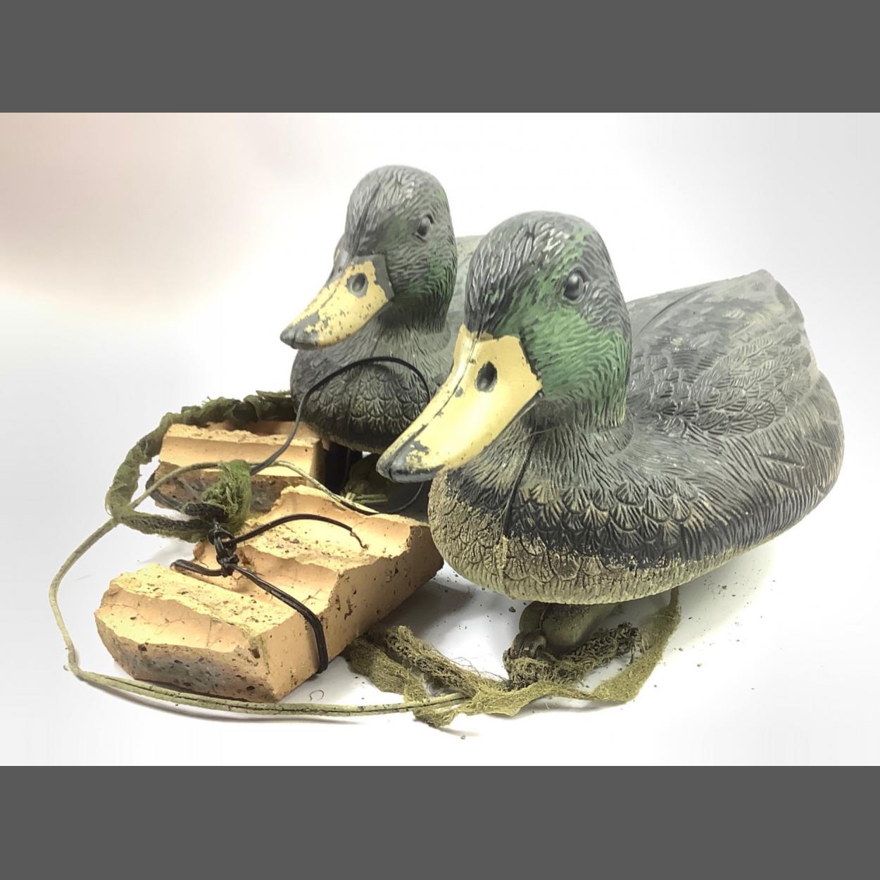 Two resin decoy ducks suitable for a pond or garden feature approx 32cm long