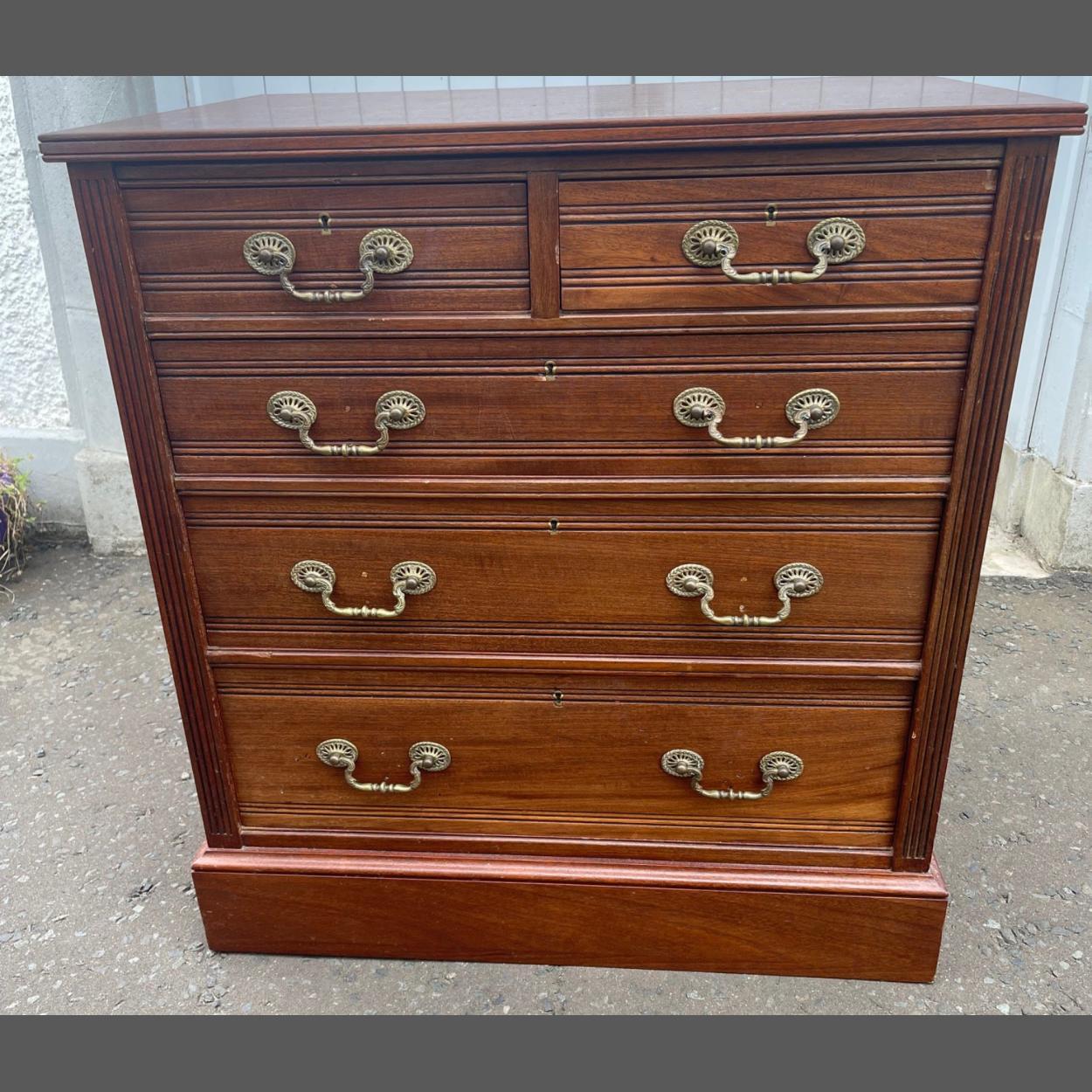 SOLID medium sized QUALITY EDWARDIAN mahogany chest of two over three drawer chest of drawers with original brass handles - dimensions 75cm width x 55cm depth x 85cm height approx