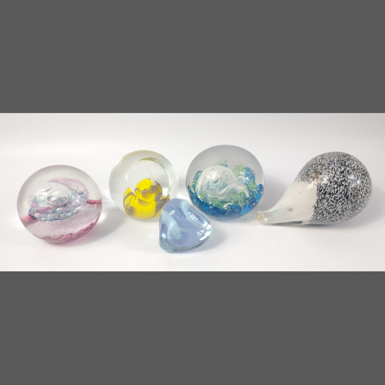 COLLECTIBLE! Two SELKIRK GLASS Paperweights, a WEDGWOOD GLASS hedgehog, and two CAITHNESS glass paperweights