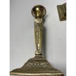 A PAIR of CHARMING Art Deco inspired plated candlesticks depicting 'Swags'n'Tails' with a rams head at the top of the tapered columns - height 24cm each approx