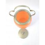A circa 1930's VINTAGE ART DECO orange glass lidded biscuit barrel - looks different and current! - by JWT maker - dimensions 23cm height x 13cm diameter approx - the handle has been replaced at some point but does not detract from this UNUSUAL PIECE!