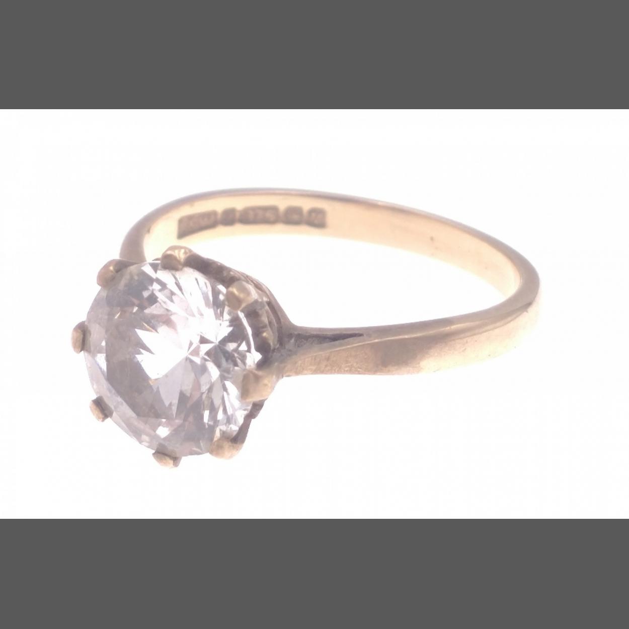 A 9ct yellow gold ring stamped 375, with clear stone (1cm dia), Size P, gross weight 2.8g