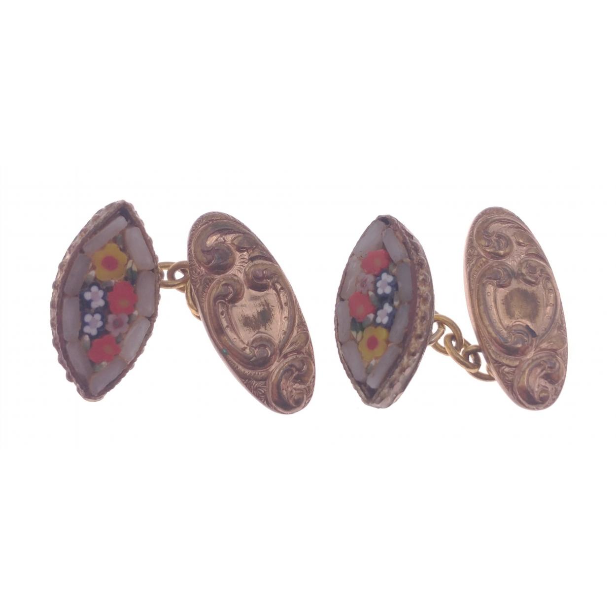 A pair of VINTAGE unmarked micro-mosaic cufflinks with floral pattern - 1st class workmanship and an unusual GIFT for this Xmas!