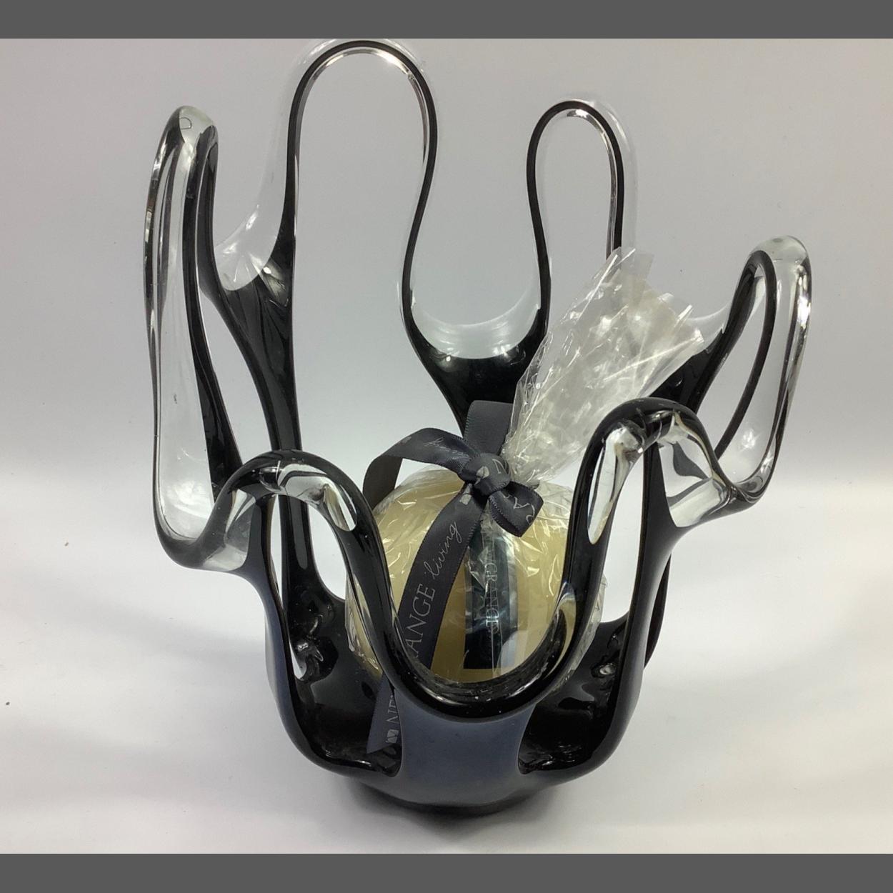 An unusual black and white glass candle holder (23cm high) with a Newgrange living candle