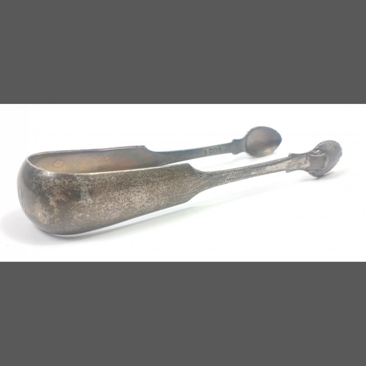 A pair of early 19th century SCOTTISH SILVER sugar tongs by Peter Aitken , the tongs are fully hallmarked for GLASGOW 1824 and measure 15cm long with a weight of 55 grams