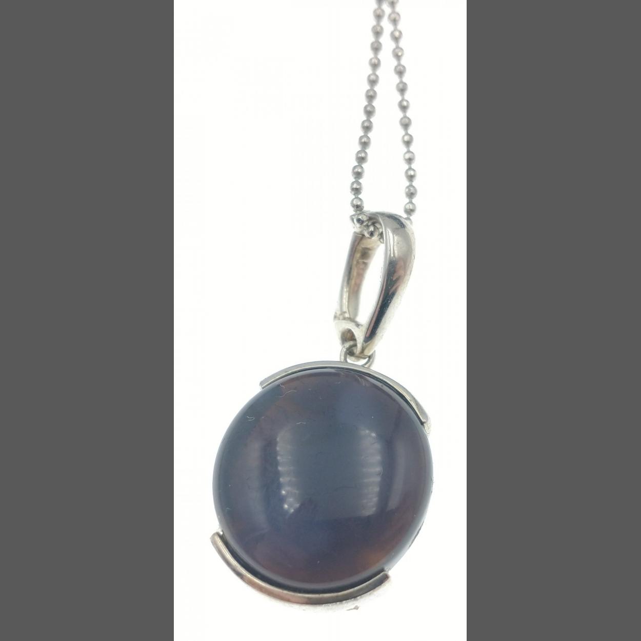A white gold chain stamped 18K, 40cm long (weight 1.32g) with a pendant stamped 925 with a blue stone 1.5cm long
