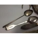A nice lot of EPNS items to include two nice card trays one with a Swan stamp. Also two Hallmarked teaspoons one with Victorian London stamps and one with nice clear sheffield marks.