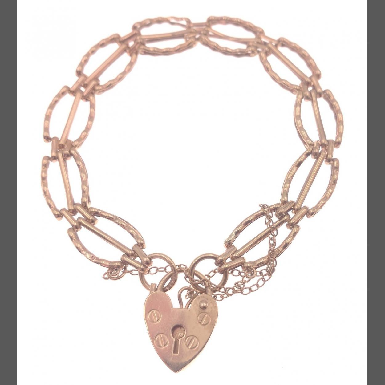 A 375 stamped yellow gold chain-link bracelet 18cm length approx with heart-shaped 375 yellow gold locket weight 9.25g approx