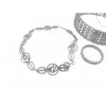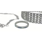 A mixed lot of jewellery to include a STERLING stamped UNUSUAL silver bracelet 8.25g approx with also a .diamente studded snap-shut bracelet with safety chain 6.5cm diameter approx with a 'white metal ring surrounded with blue stones'