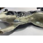 A collectible Vintage BESWICK pottery black French Poodle in lovely condition with no signs of damage cracks etc - dimensions 14.5cm high x 15cm long approx and a SYLVAC pottery playful Border Collie figure dimensions 24cm length x 10cm height