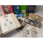 A box full of assorted STAMPS and STAMP ALBUMS including 3 Stanley Gibbons Royal Wedding from 1981 - worth viewing in person!