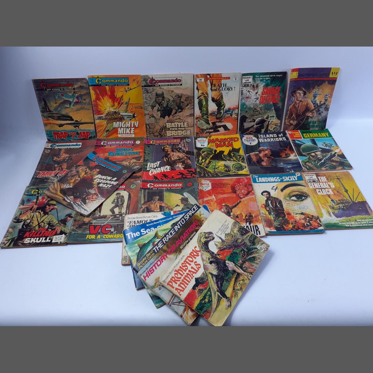A small collection of ten earlier COMMANDO war stories Picture Books, nine BATTLE Picture Library and similar. Also to include six BROOKE BOND Picture Card albums. Some with marks, creases etc.