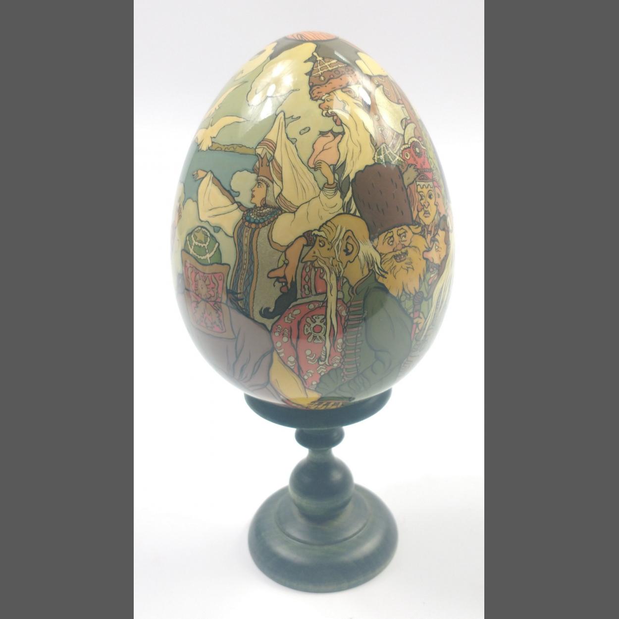 A large Russian fairy tale wooden egg approx 13cm high
