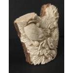 An intricately carved deer horn depicting a frog and a spiny-backed lizard, quite breath-taking quality of work stands approx 9cm high, no visible damage