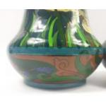 Condition report: One vase has signs of restoration as there is a crack which can be felt from the inside and the piece has a dull ring. The other vase has a bright ring which suggests no repairs and there is certainly no visible cracks although there is a small patch of mottling approx 2cm across on the bottom of the leaves, this appears to be in the glaze.