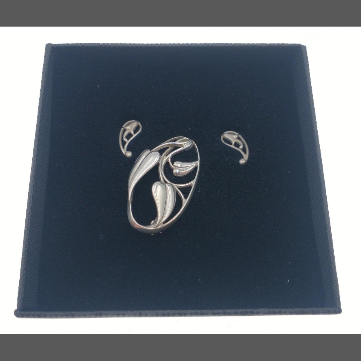 An OLA GORIE leaf brooch 4cm long and pair of earrings (stamped silver) 1.5cm long, weight 6.9g
