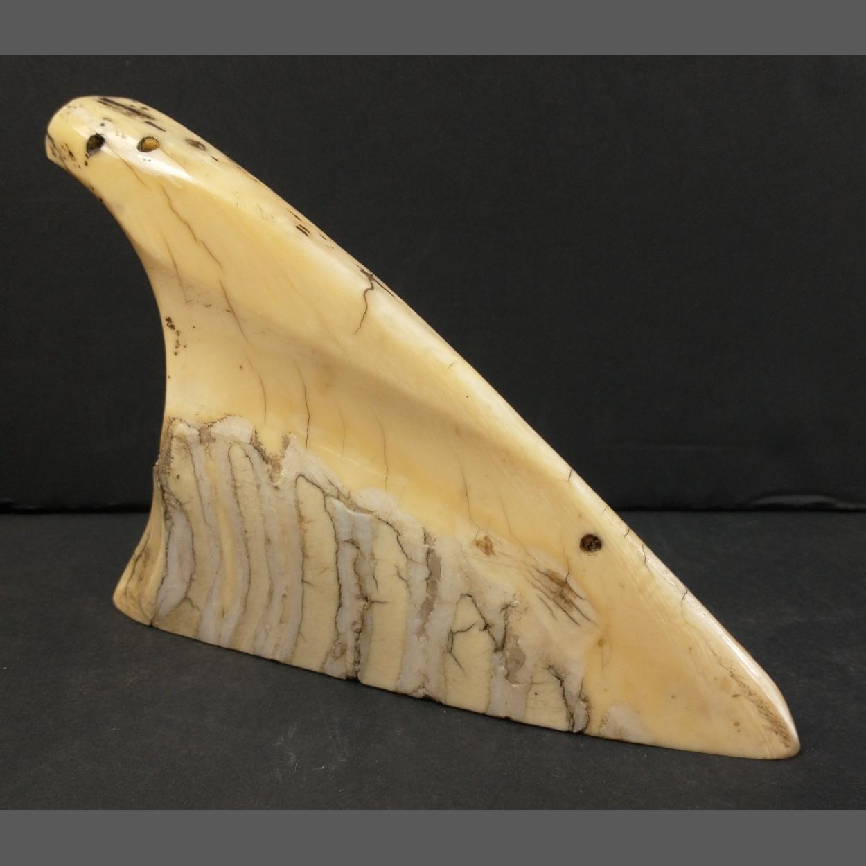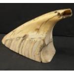 An antique polished whale tooth 14cm at the base and standing approx 10cm high