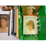 A box with royal memorabilia from the Queen's coronation in 1953 including souvenir magazines - Picture Post, Illustrated, various newspapers including The Scotsman and Daily Herald and a number of books including George V and Edward VIII, Charles Royal Adventurer, Diana Princess of Wales a Tribute in Photographs etc