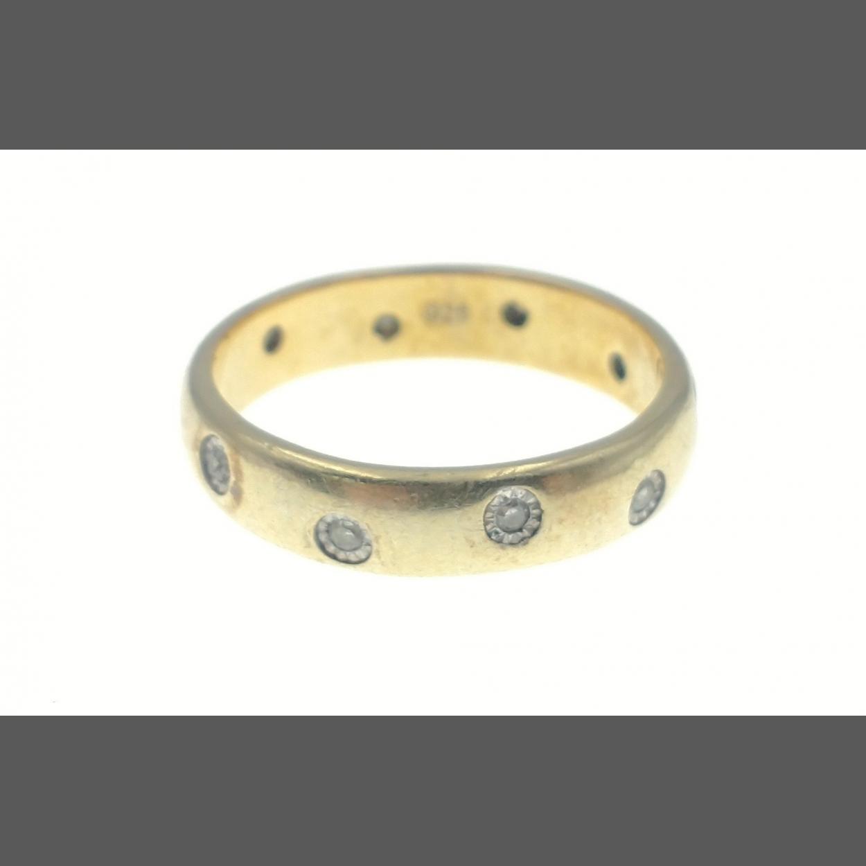 A ring, stamped 925, with gilt finish set with tiny diamonds, size N/O, gross weight 3.1g