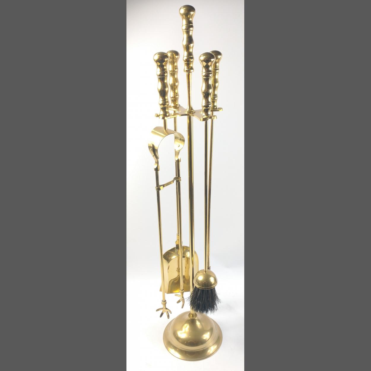 A very large brass COMPANION SET on stand standing around 83cm tall , the set comprises brush tongs poker and a shovel - don't think they have been used!