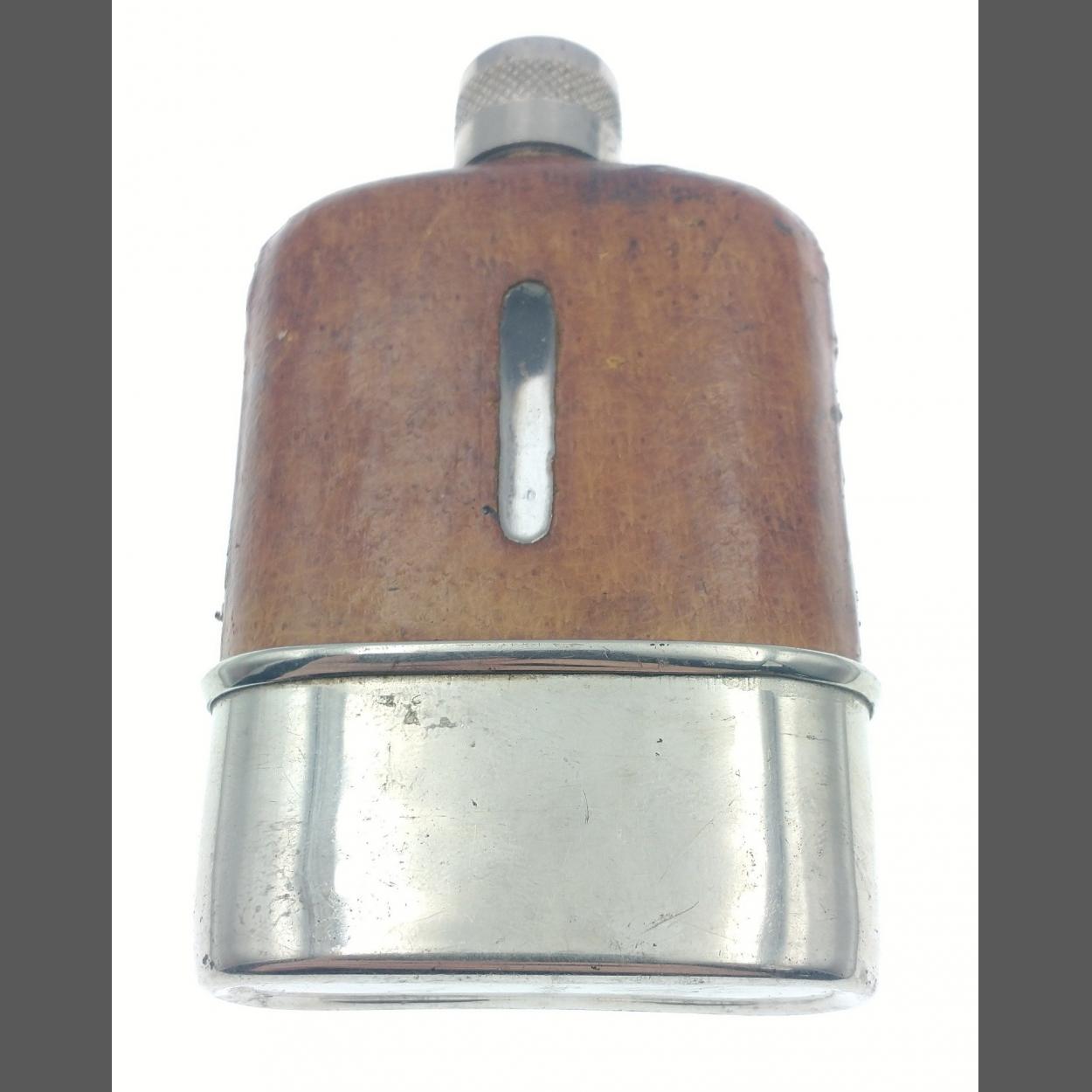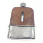 A lovely quality wee leather and white metal covered hip flask - dimensions 10cm height x 6cm width