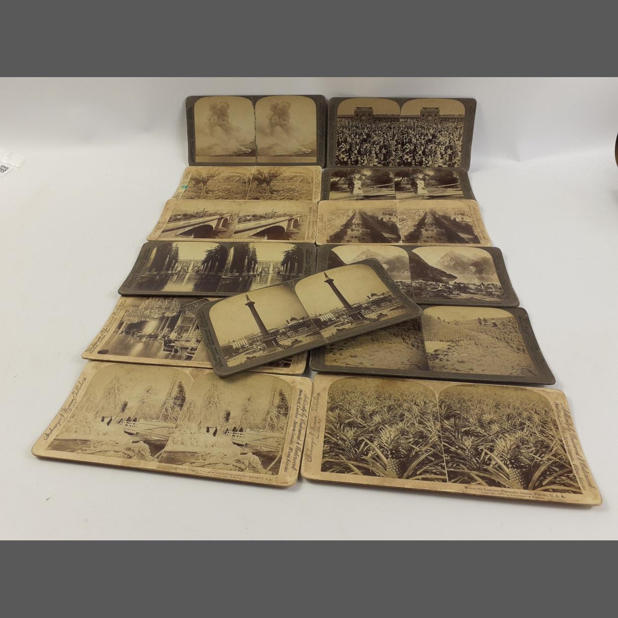 AMAZING! A quantity of thirteen stereoscopic slides including views of the Jumma Mosque in Delhi, Martinique Volcano eruption and others