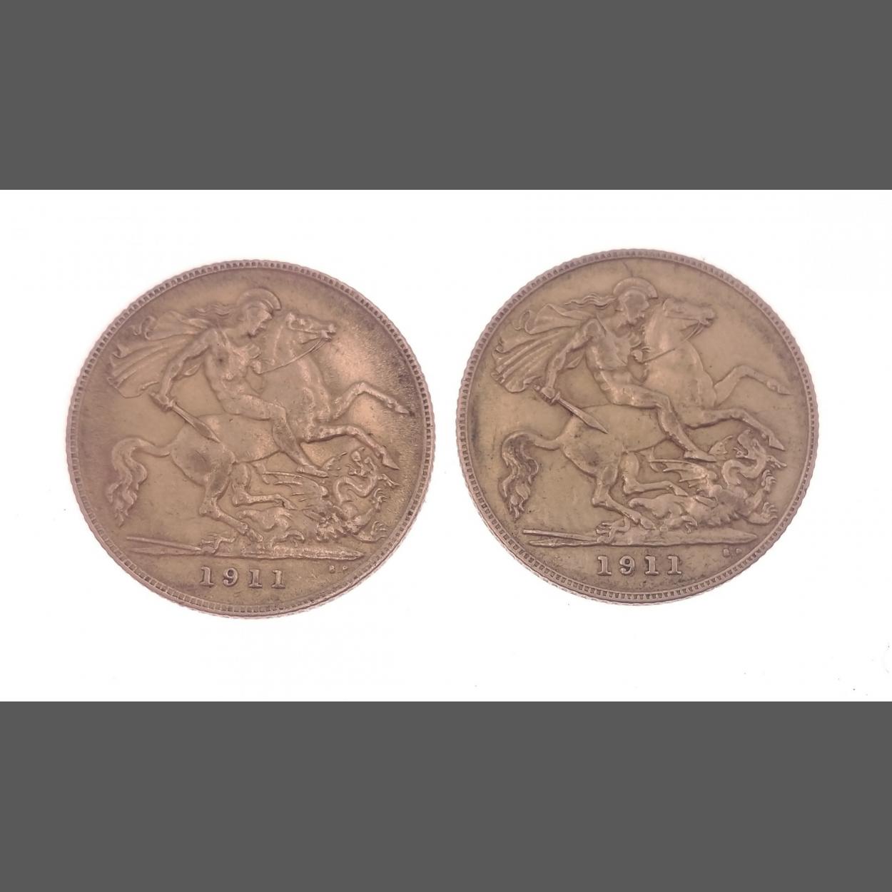 TWO HALF Gold 22ct Sovereigns GEORGE V both 1911 in good condition weight 3.97g approx and 3.96g approx