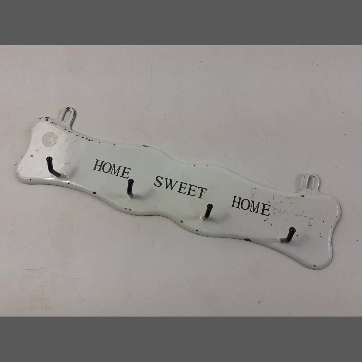 VINTAGE White Enamelled 'Home Sweet Home' wall key holder which has four hooks for all those essential car and shed keys etc - dimensions 37cm x 10cm approx