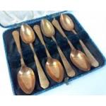 VINTAGE! An UNUSUAL presentation box set of six bronzed style teaspoons with hammered finish handles