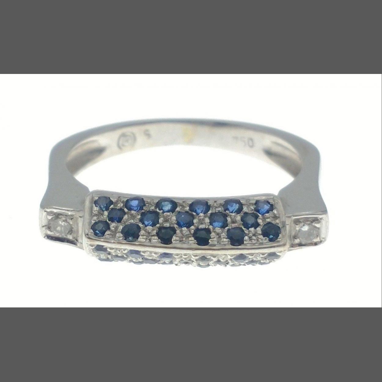 A ring stamped 750 white gold, set with blue sapphires and clear stones, size M, gross weight 4.2g