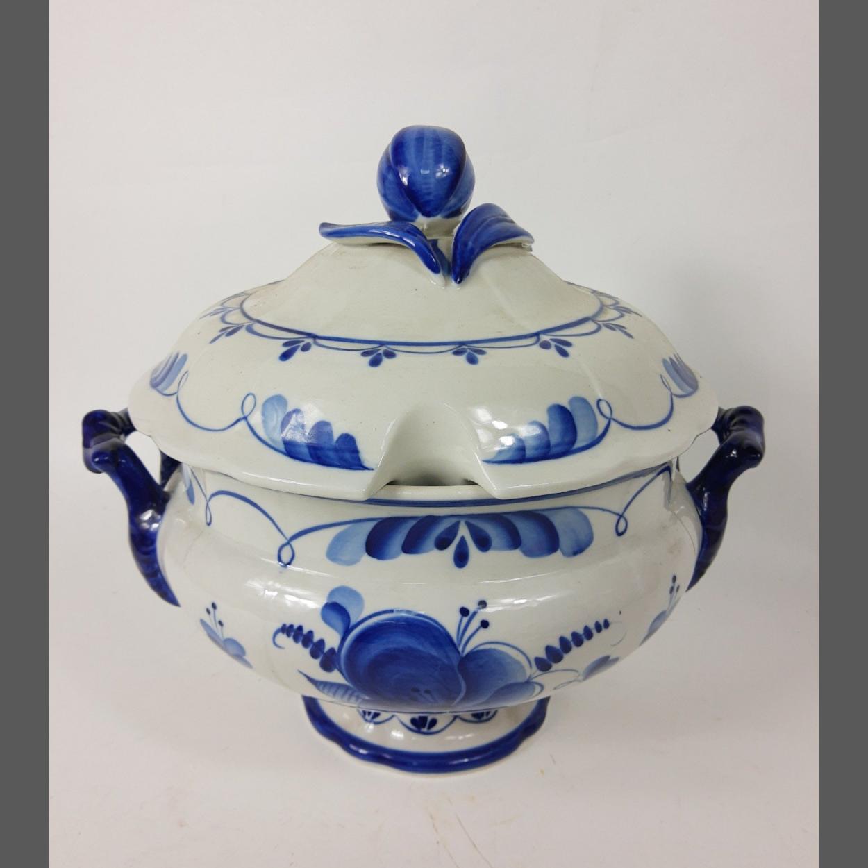 A large Russian GZHEL blue and white porcelain tureen standing approx 34cm high, no chips, cracks or visible damage