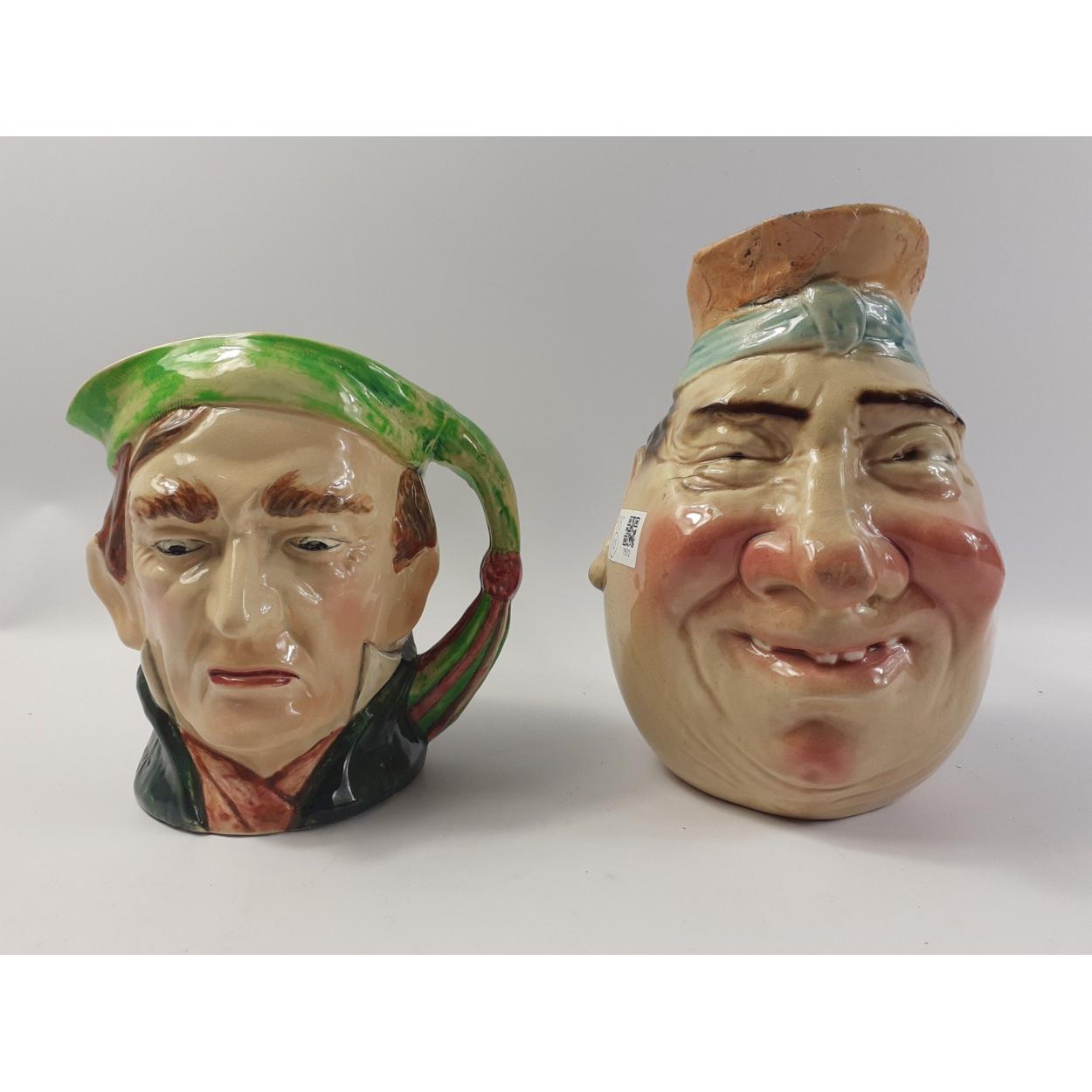 Two large character jugs one by SARREGUEMINES 21cm tall with damage to the rim and a chipped handle also a BESWICK WARE 18cm tall one with the model number 372 on the base
