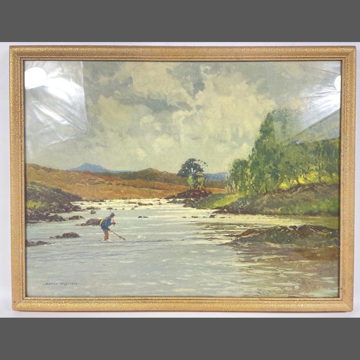 'TROUT FISHING ON THE GARRY, PERTHSHIRE framed print by NORMAN WILKINSON frame size 62x48cm