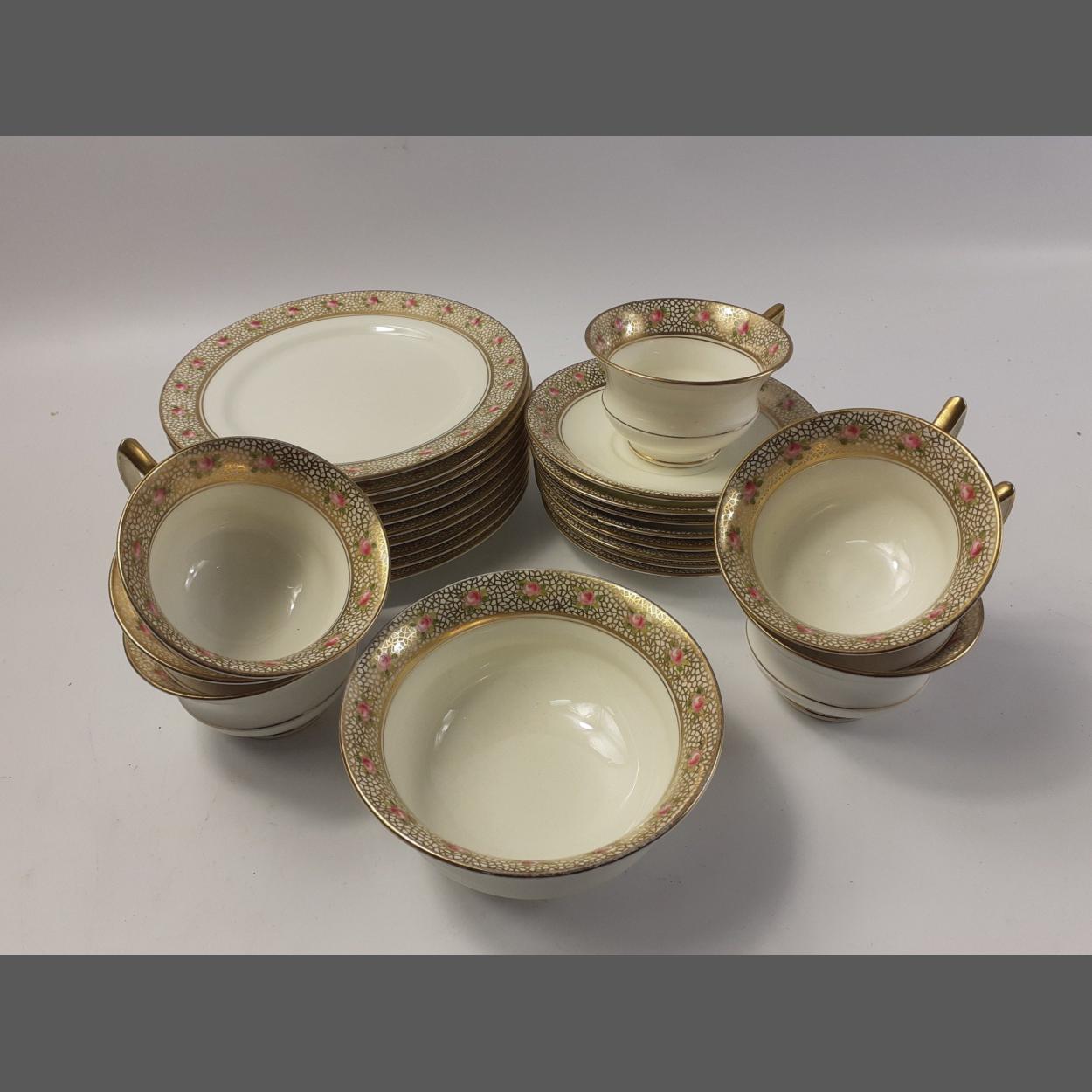 A nice collection of rather attractive AYNSLEY china with nice gilding, ten 18cm side plates, seven cups, eight saucers and one sugar bowl. A few minor edge issues on a few pieces but mostly in great condition.