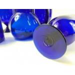 A super group of BRISTOL BLUE vintage glasswear to include four substantial goblets each standing 18cm all with ground pontil marks. A 15cm tall water jug and a matching beaker. A really lovely collection of unusually large Bristol Blue pieces.