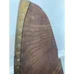 ANTIQUE CURIO! A cWWl era SUBSTANTIAL hard wood propeller(one half of) with brass trim, turned into a standing 'Feature'! The propeller is free standing and stands on an original base - the item stands 170cm tall and width(at the widest point on the blade of the propellor) 29cm approx - there is a slight chip towards the top edge of the blade but this in no way detracts rom the WONDER OF THIS ITEM!