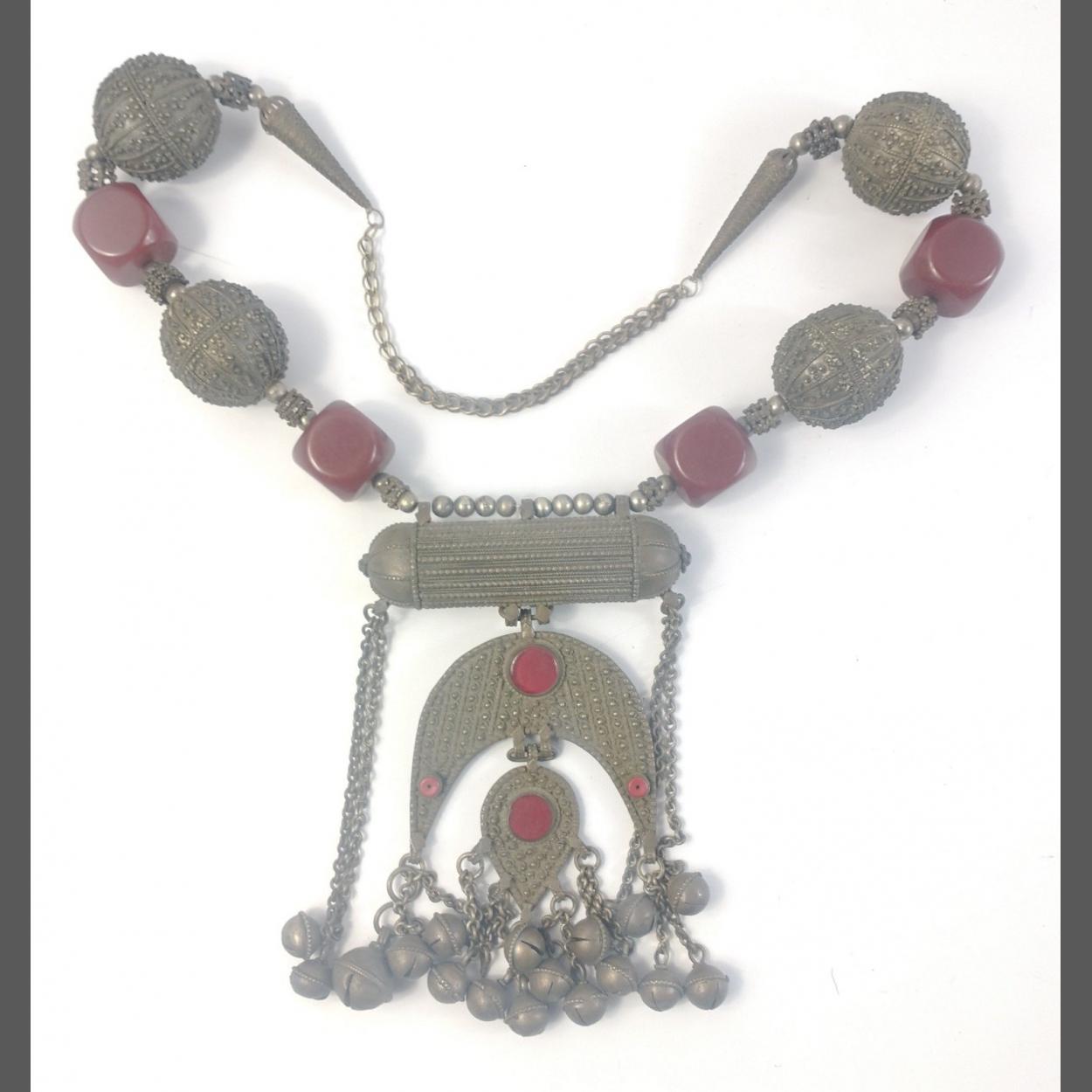 Huge Middle Eastern necklace with red resin beads and white metal sculpted balls and bells. Bought in the Yemen this is a very impressive Bedouin style piece. Measures over 50cm across and weighs just over 500g