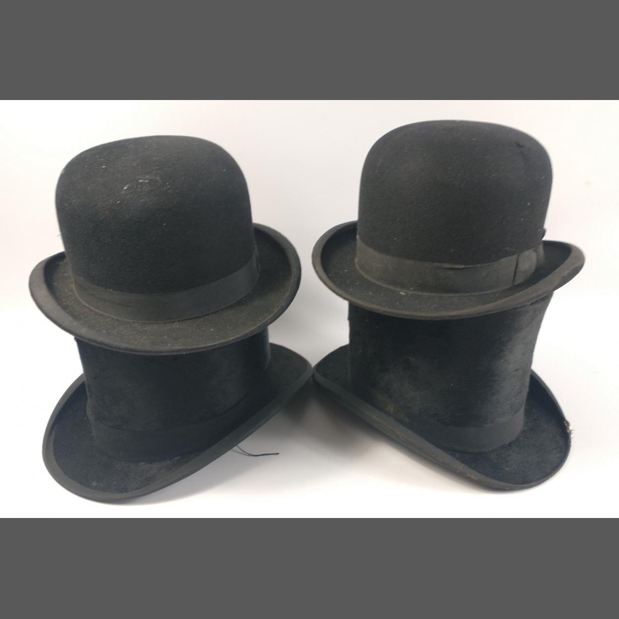 Two BOWLER hats and two TOP hats by various makers each of the hats has some small amount of damage