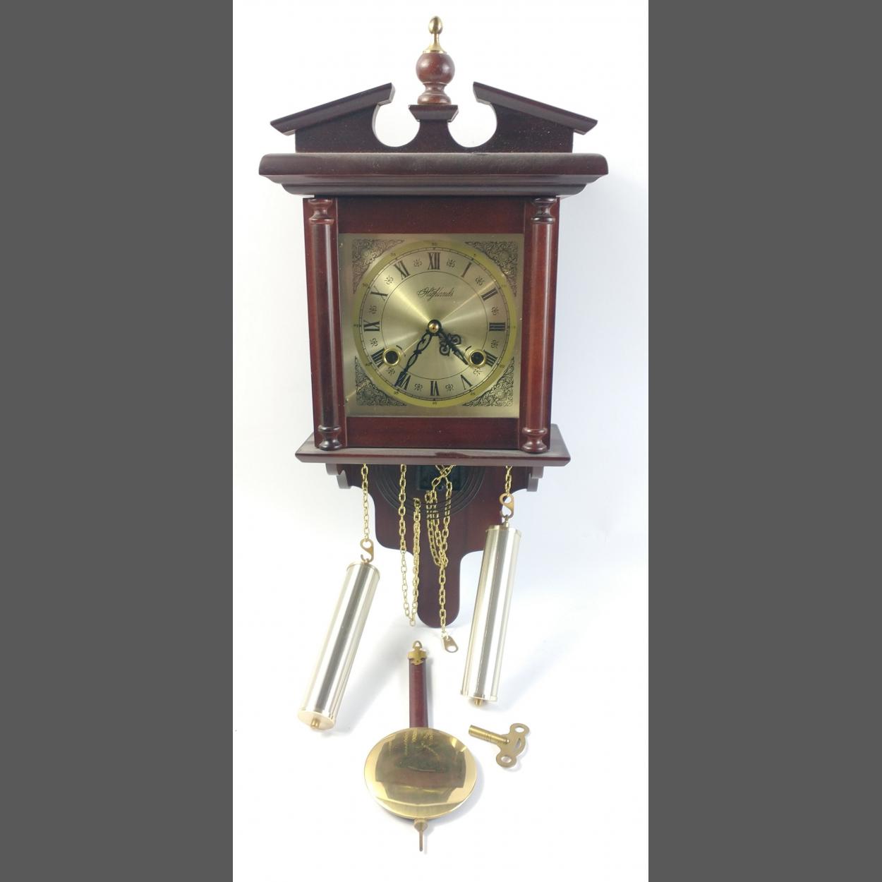 A wall clock by HIGHLANDS the clock comes complete with key pendulum and faux weights